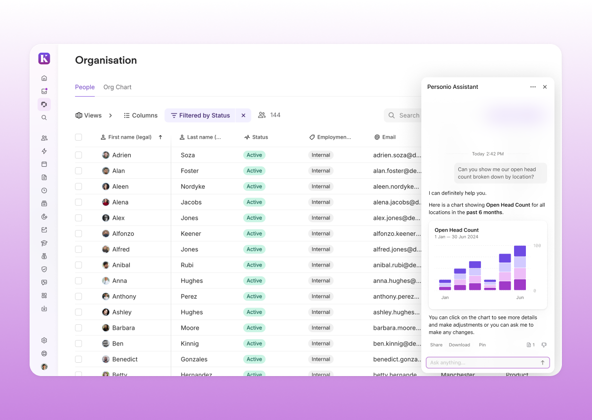 Personio ist die HR-Software für kleine und mittelständische Unternehmen mit 10 bis 2.000 Mitarbeitenden. Das Münchener Unternehmen mit europäischen Standorten digitalisiert Personalprozesse durch eine integrierte Plattform: Personalmanagement, Recruiting, Talentmanagement und Gehaltsabrechnung in einem System. Die People Workflow Automation eliminiert manuelle Aufgaben und reduziert Verwaltungszeit um bis zu 40%. So können sich HR-Teams auf strategische Aufgaben und Mitarbeiterbetreuung konzentrieren statt auf Papierkram. Über 15.000 Unternehmen in Europa nutzen bereits Personio, um ihre Personalprozesse effizienter zu gestalten.