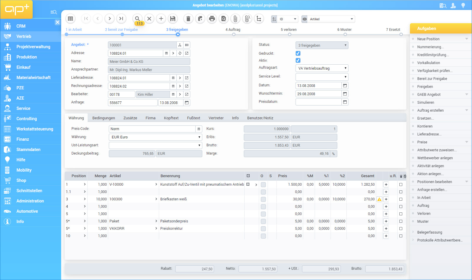 APplus deckt ab, was produzierende Unternehmen brauchen: Fertigung, Logistik, Projektmanagement, Service, CRM und Finanzwesen in einer Plattform. Modular erweiterbar, webbasiert und mobil nutzbar. Branchentief für Maschinenbau, Automotive, Medizintechnik, diskrete Fertigung und mehr.