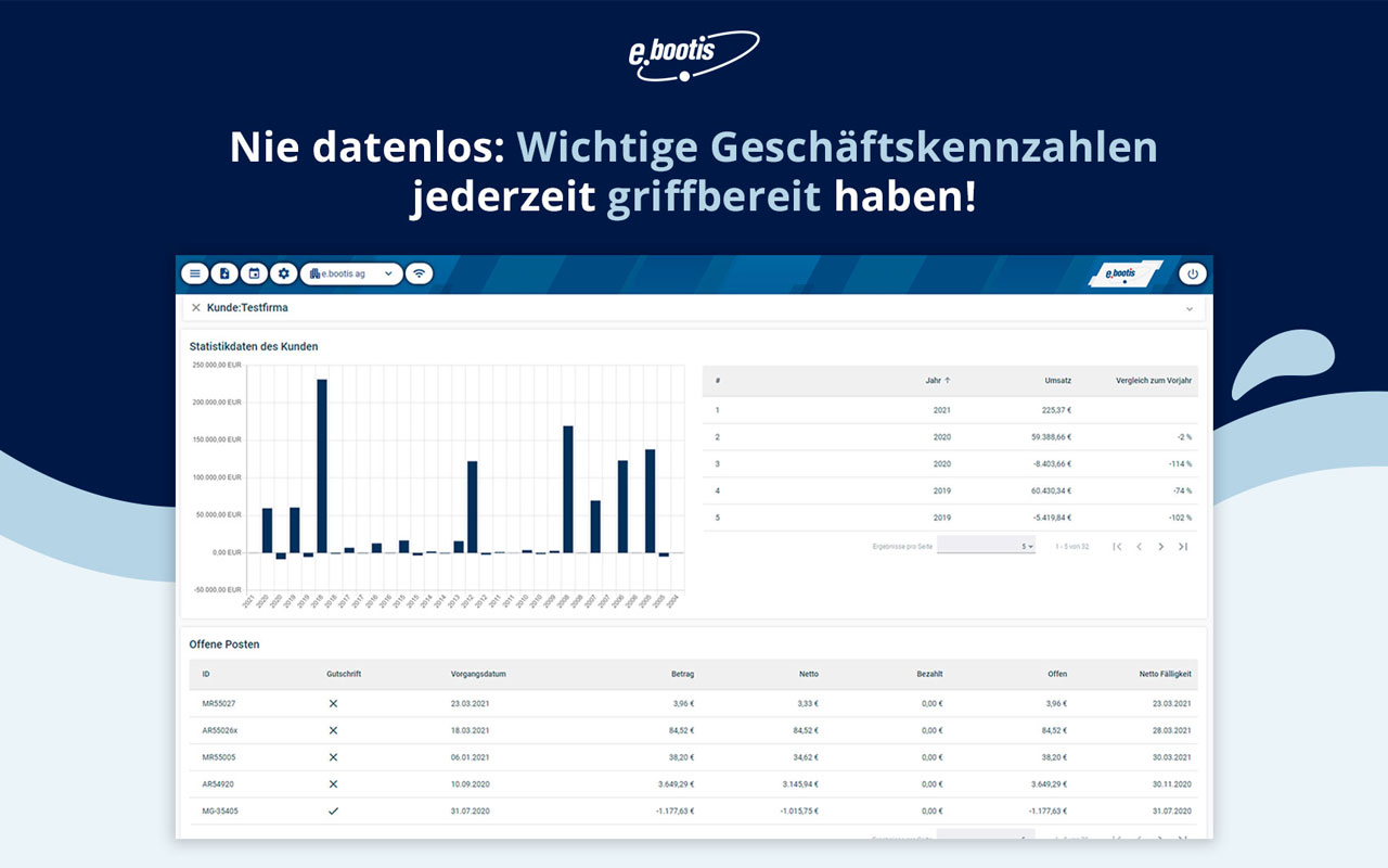 Mit über 40 Jahren Markterfahrung versteht sich e.bootis mit seinem Hauptprodukt ebootis ERP als ganzheitlicher ERP-Anbieter, der die gesamte Wertschöpfungskette abdeckt – von Entwicklung und Beratung über Implementierung bis Support und Hosting.