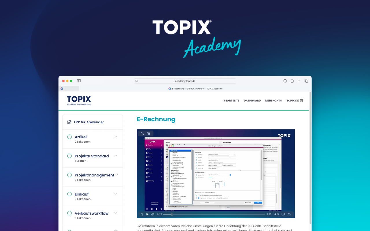 TOPIX ist die integrierte Business Software für kleine und mittlere Teams: ERP, CRM, DMS, HR und Finance in einem System. Modular, skalierbar und für macOS sowie Windows – wahlweise on-premises oder in der Cloud. Für durchgängige Prozesse ohne Insellösungen, mit zentralen Daten und klaren Workflows.